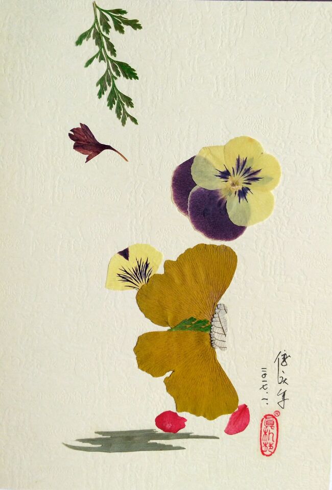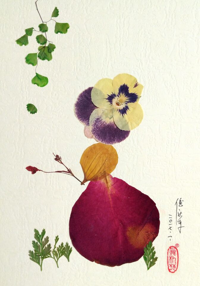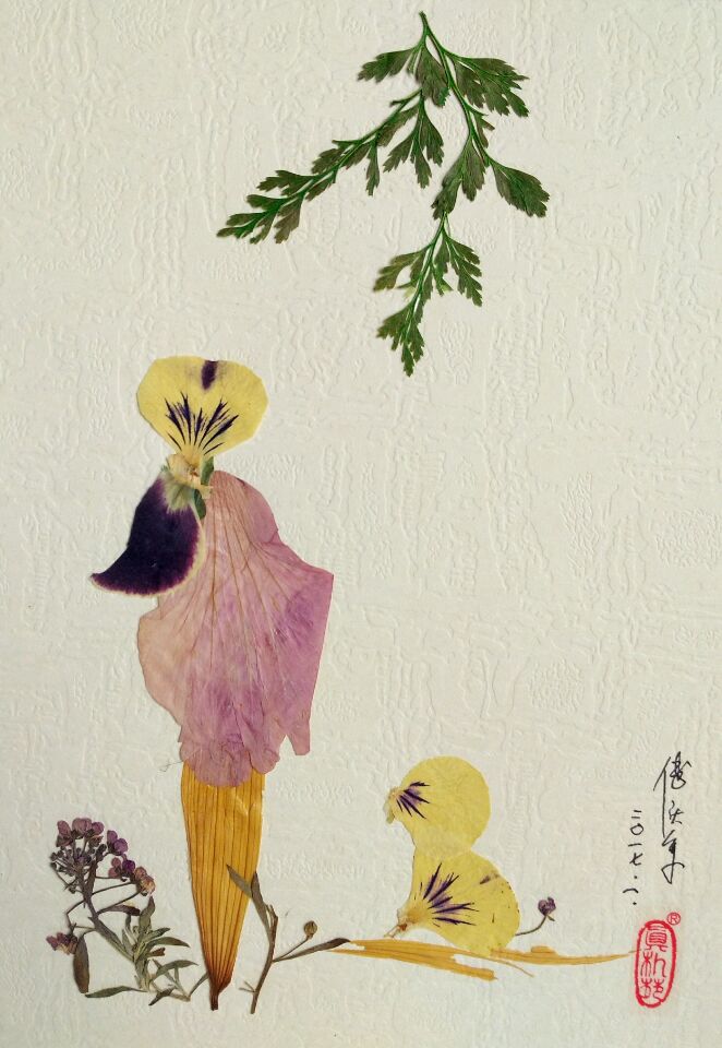 而我觉得灵感源于大自然。大自然的回馈更是新鲜,信手拈来的花瓣就能创作出一幅押花画,最近真朴苑创始人傅庆军女士亲自创作了几幅小摆件押花画,特意签上名字供各位购买,以下就献上创始人创作的押花画