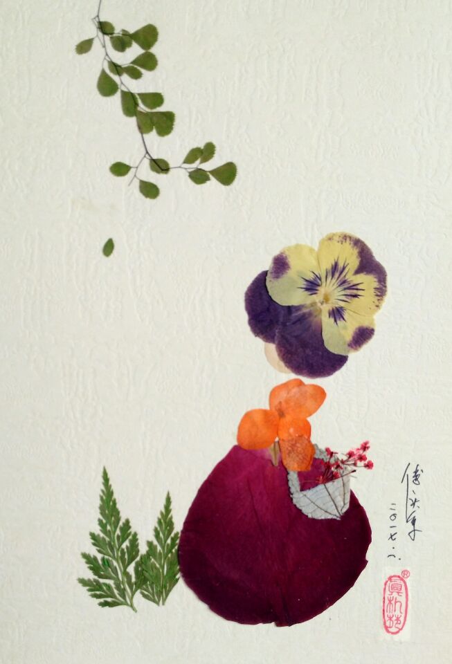 记忆尤深的是,一位年轻母亲牵着二年级的儿子来到我们的工作台前,妈妈很希望儿子参与体验活动,可再三的询问却换来儿子一个劲的摇头!看着低眉不语,表情呆滞的小童,听着妈妈声声怨语和一脸尴尬,我想:一个本应阳光自信、天真活力的八龄童,怎么就变成这样一个封闭无欲的“小老头”?一些未必关联的名词怦然我脑海里集成:"自闭症"“留守儿童”“押花植物疗愈”,想着想着,我觉得今天自己要管定了,即便不能改变小童今后,也要改变他此刻,不是说押花对心理疗愈有作用吗?我就试试!