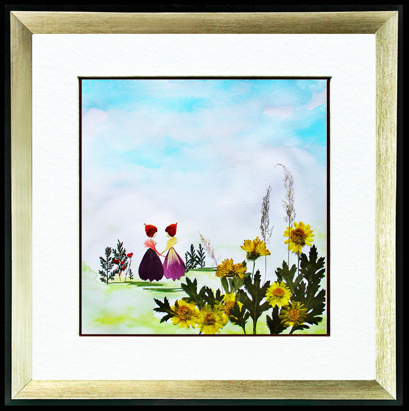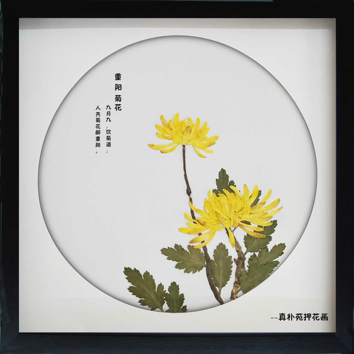 如今,我也有更好把每年重阳节气息留存的方法,那就是植物押花,押花最早起源于植物标本,而植物押花就是经脱水处理后,以押制好的花材作为创作的基本材料,以其形态、色彩和质感,经过精巧构思和艺术设计,粘贴制作而成艺术品,造型可以是人物、动物、风景,也可以是一种植物或原花的再现。跃然于画面的鲜花不“凋谢”、枝叶不“枯萎”,将绽放的美丽做成一幅画,永久珍藏!