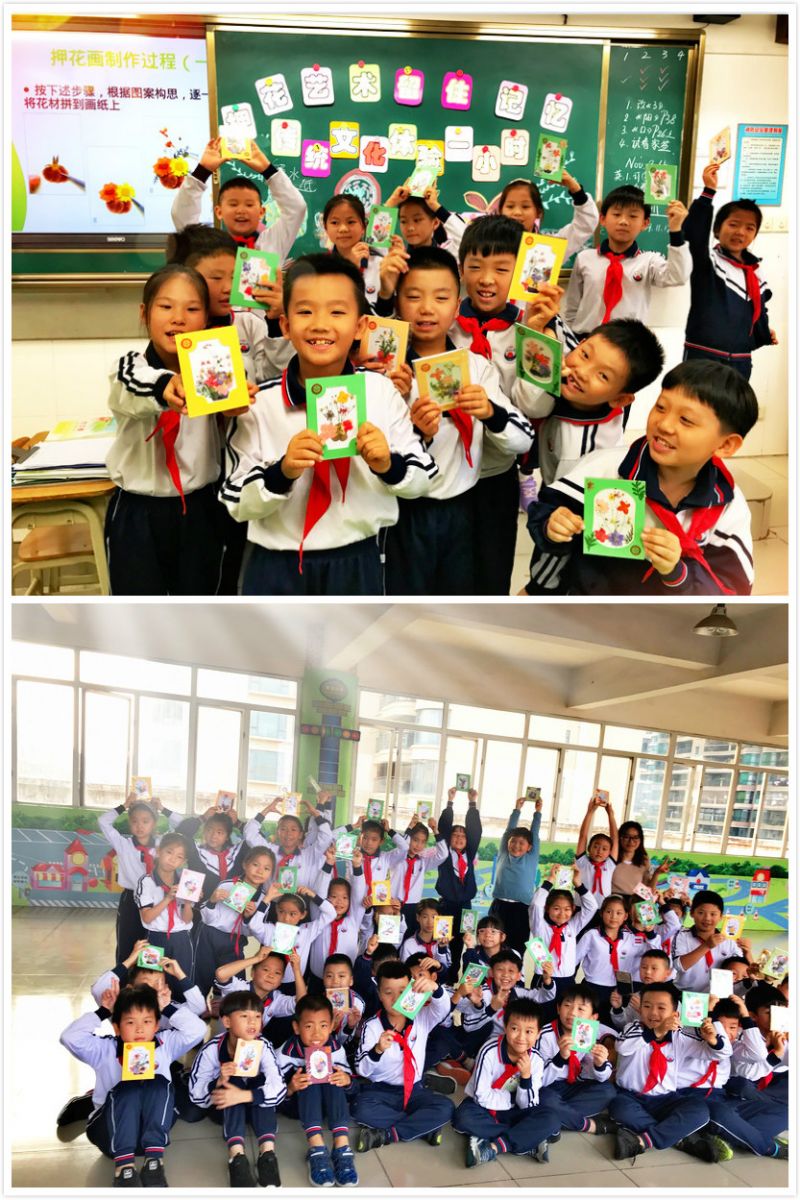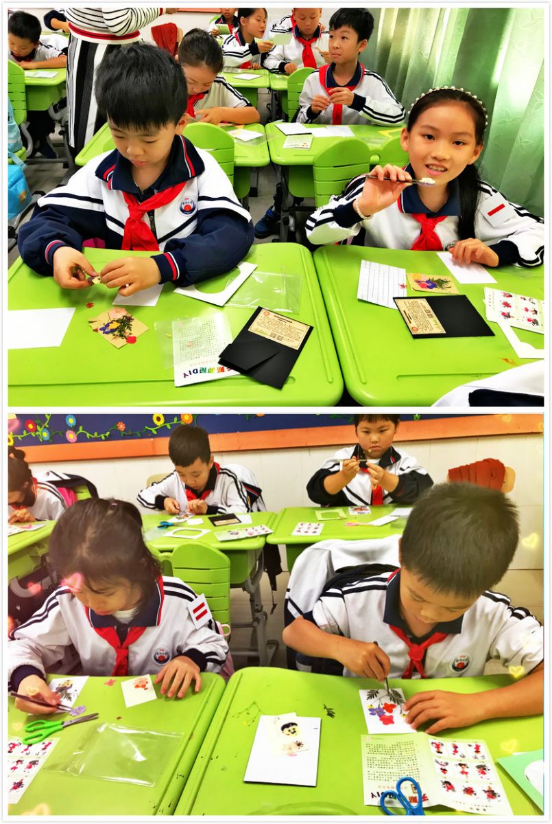 瞧,看着自己精心完成的押花作品,同学的脸上露出了灿烂的笑容,纷纷展示自己的成果,心里乐开了花~这真是一次快乐的传统文化体验活动!