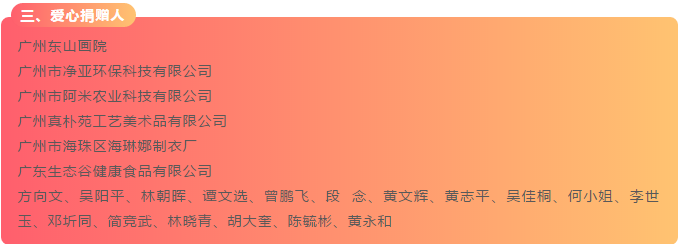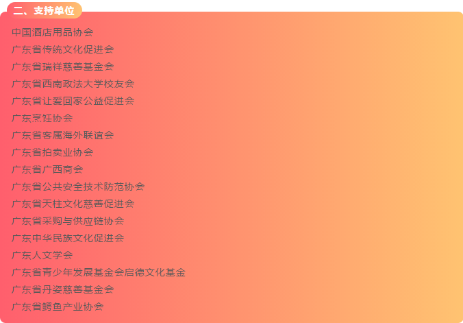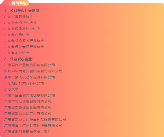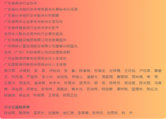 以上是为本次活动提供赞助、给予支持、捐赠拍品、爱心竞买的社会组织、爱心企业及人士名单,下一期,我们将发布志愿者芳名录,请继续关注!