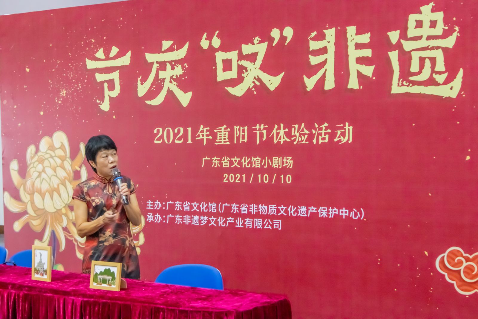 “几种重阳菊,连开傲晚霜。红黄各称赏,朵朵弄杯觞。”该诗作者东莞人林光在五百多年前如此称赞重阳节盛开的菊花。赏菊、咏菊自古以来是重阳习俗,故而重阳节又名“菊花节”。为迎接今年的重阳佳节,10月10日,广东省文化馆推出节庆“叹”非遗——重阳节活动,邀请岭南押花艺术代表性传承人傅庆军现场教授广大群众创作《重阳赏菊图》,用非遗技艺定格自然之美。