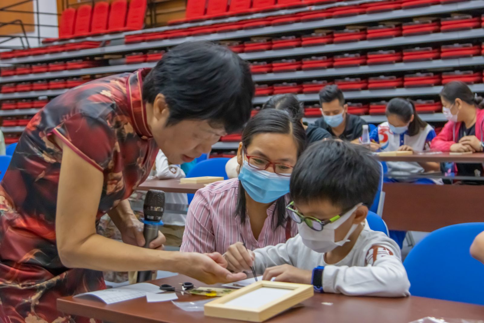 ——傅庆军指导小学员制作押花。