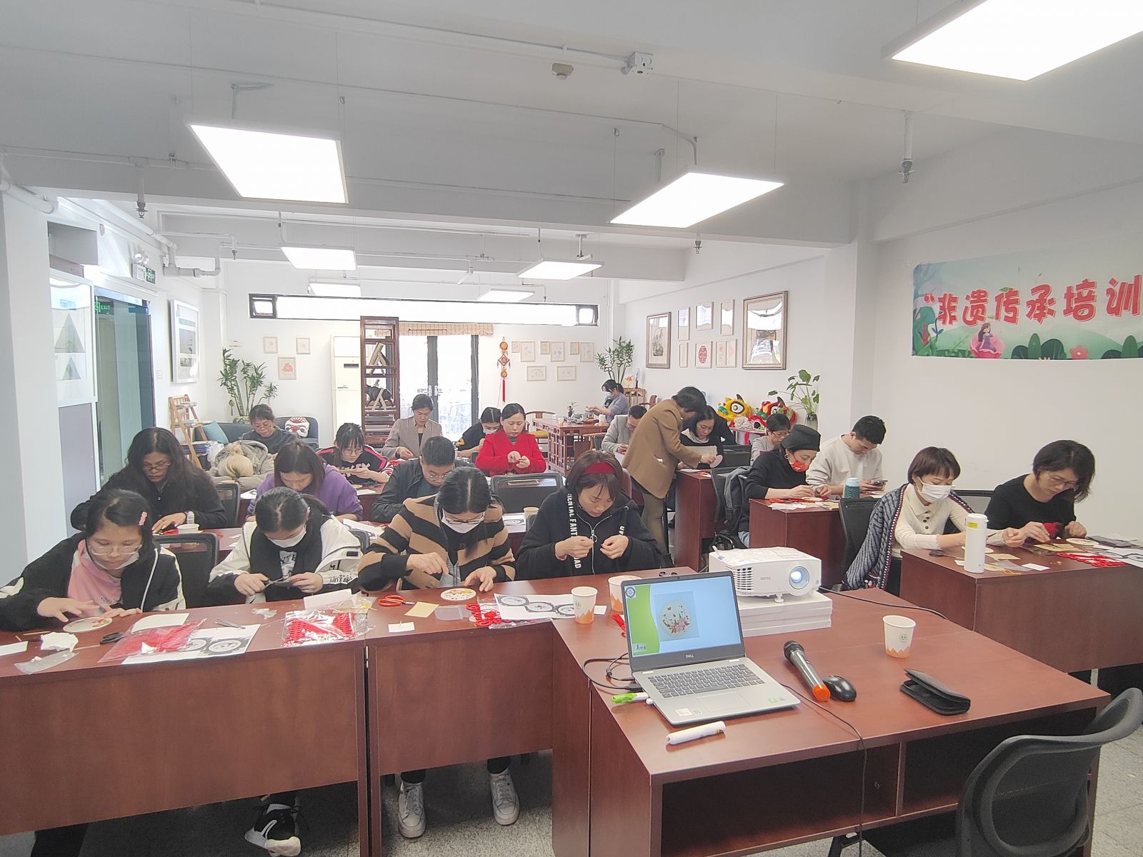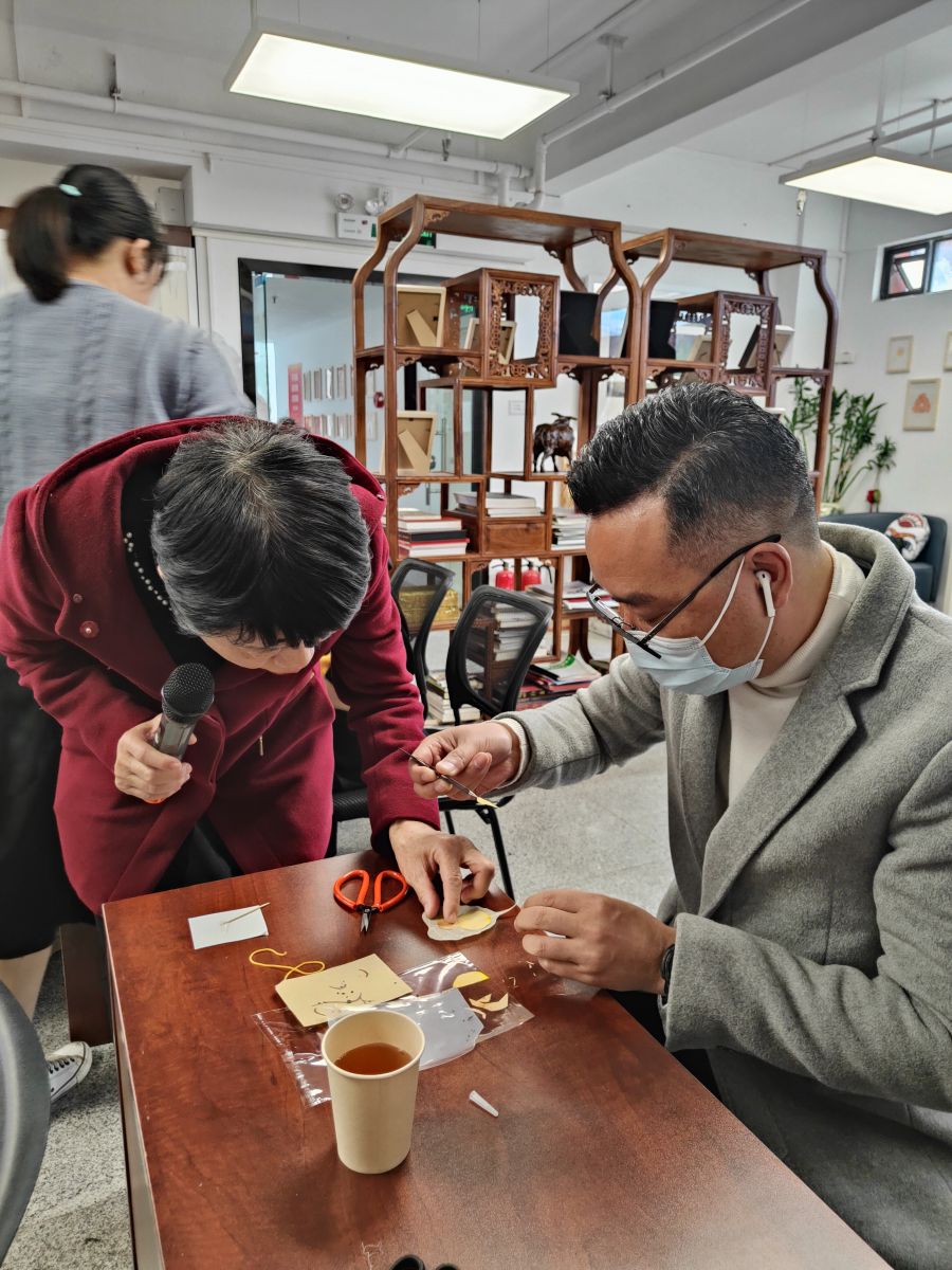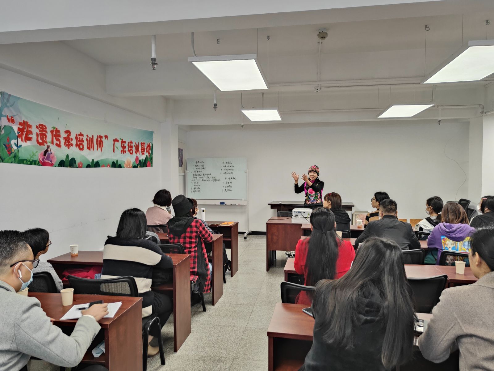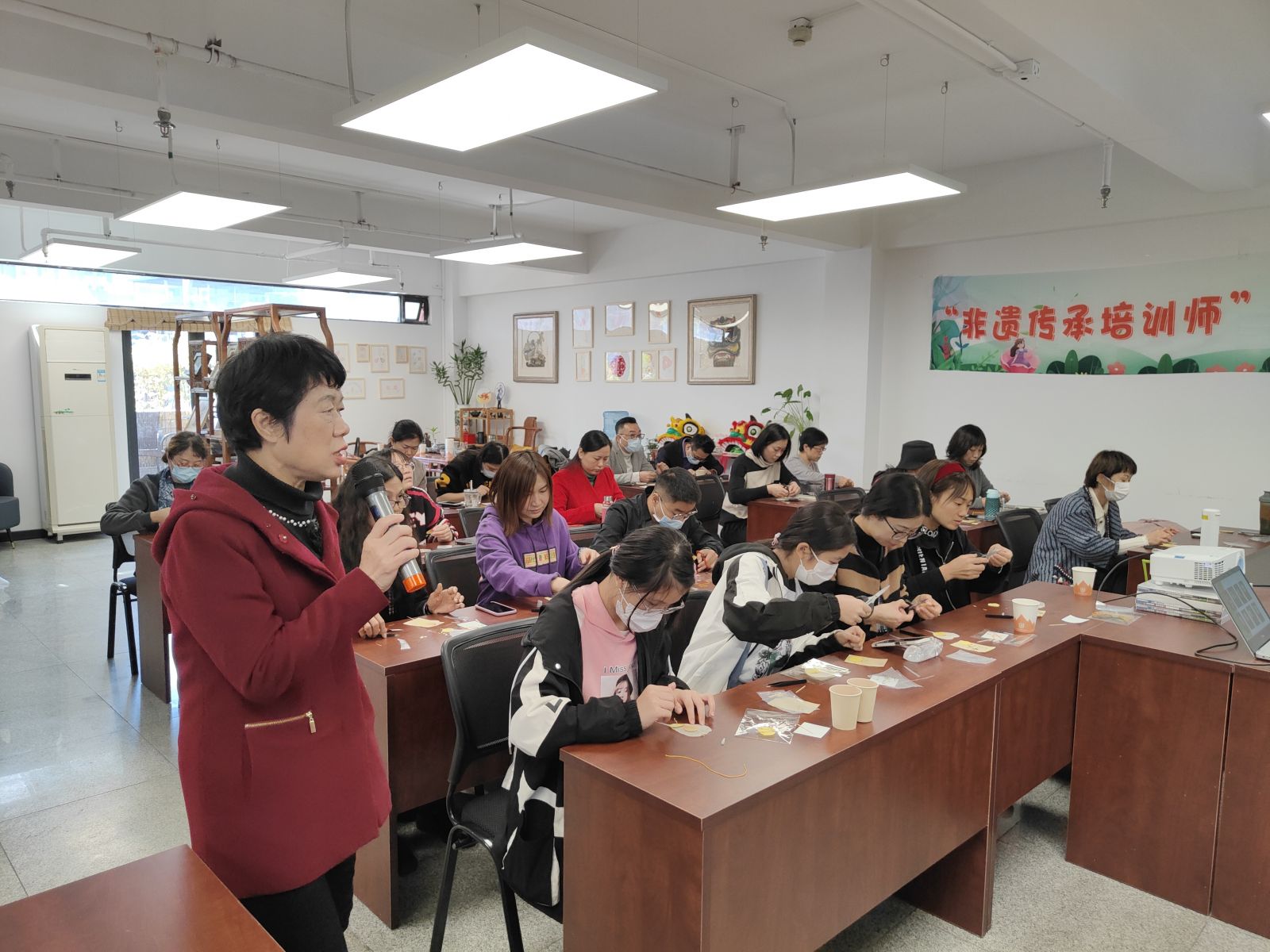 贺虹老师是广东非遗研学院的首席专家;联合国世界民俗文化使者;中国妇女发展基金会非遗公益项目剪纸组负责人;上海世界非遗文化城管委会剪纸委员会副主任。贺虹老师给学员讲解了非遗传承培训师的发展及就业前景,也让大家明白国家对非遗传承培训师的重视。