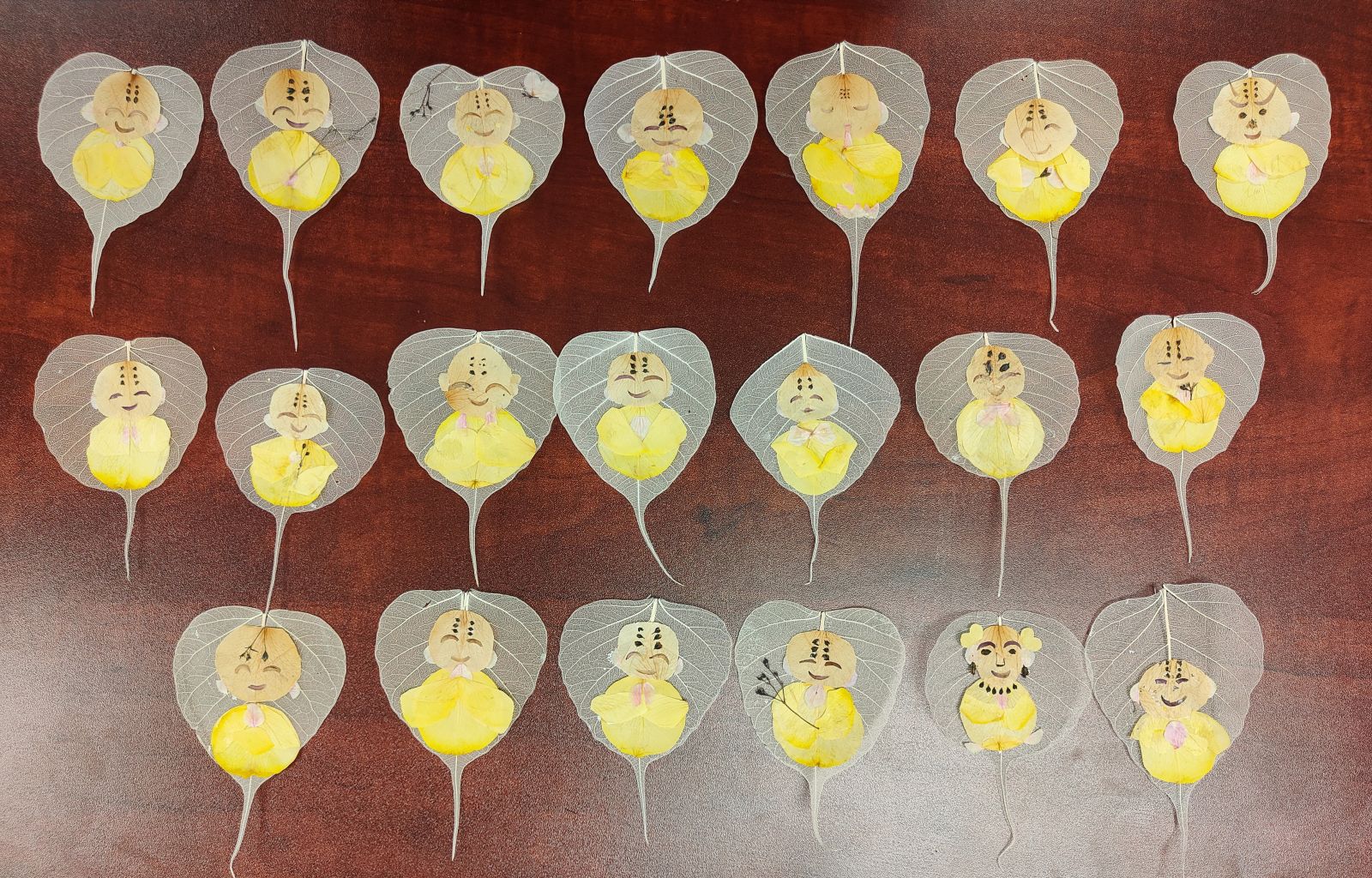 岭南押花主张少修剪,充分利用植物本真的美好,“信手拈来”,“因材施画”,“神似重于形似”写意重于写实等,是向高境界的攀登,它给了创意以极大的拓展空间,推而广之,在植物艺术上获得的这种创意思维,必定会延伸至你的其他学习与生活里,让你活得更有意义。