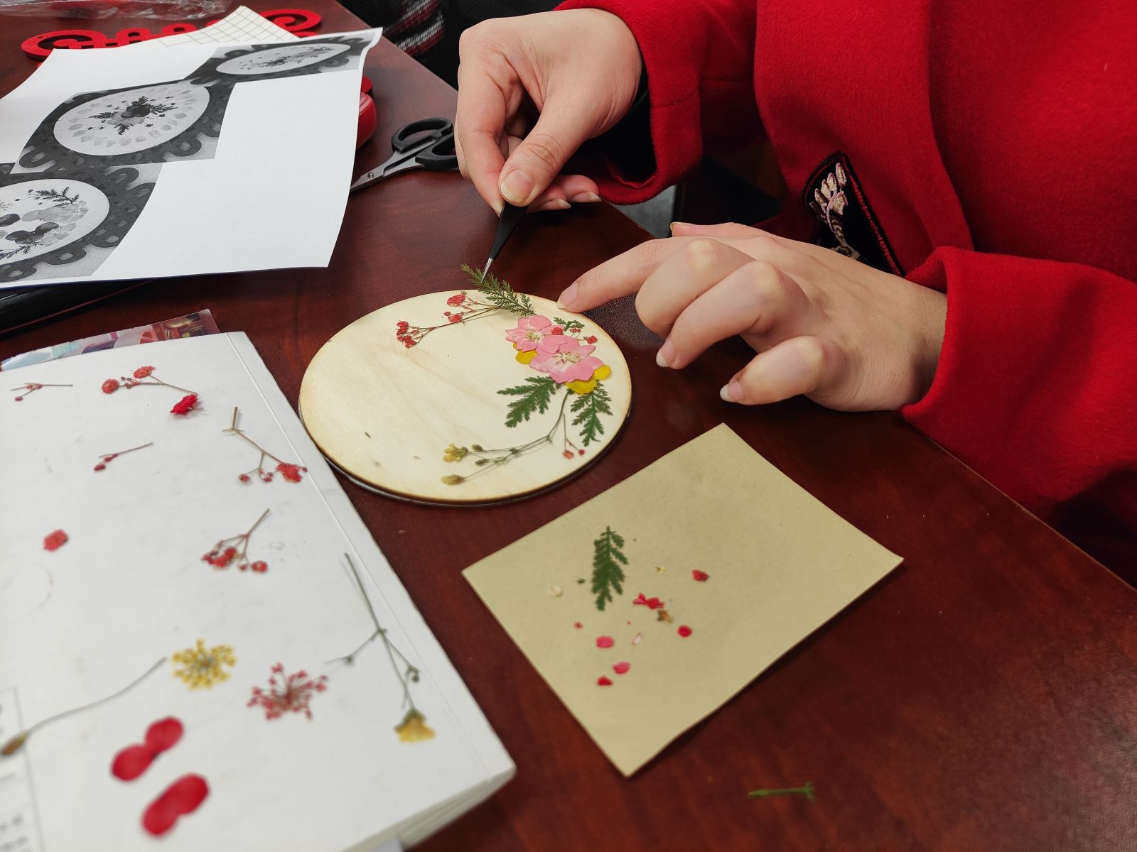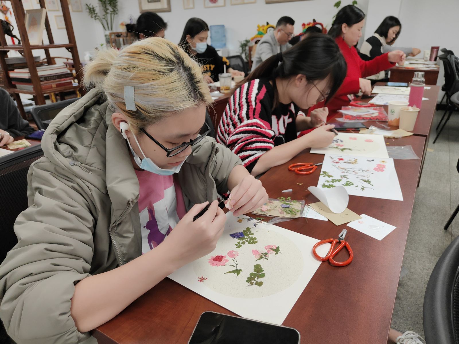 学员们制作压花书签: